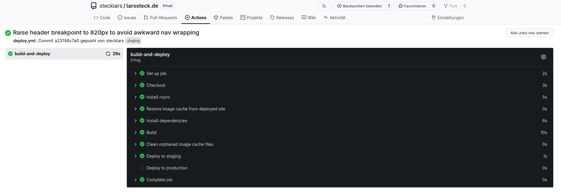 Ein besonderer Fokus bei meiner Webseite lag, wie auch schon zuvor, auf der Geschwindigkeit. Natürlich ist diese durch die Nutzung rein statischer Inhalte (HTML, CSS und JS) ohnehin schon schnell, aber ich sehe es auch immer ein wenig als Proof of Concept, was alles möglich ist. So werden z.B. Bilder in der Regel entweder als AVIF, WebP oder JPG ausgeliefert und beim Deploy der Seite in einer CI / CD-Pipeline auf meiner eigenen Gitea-Instanz entsprechend komprimiert.